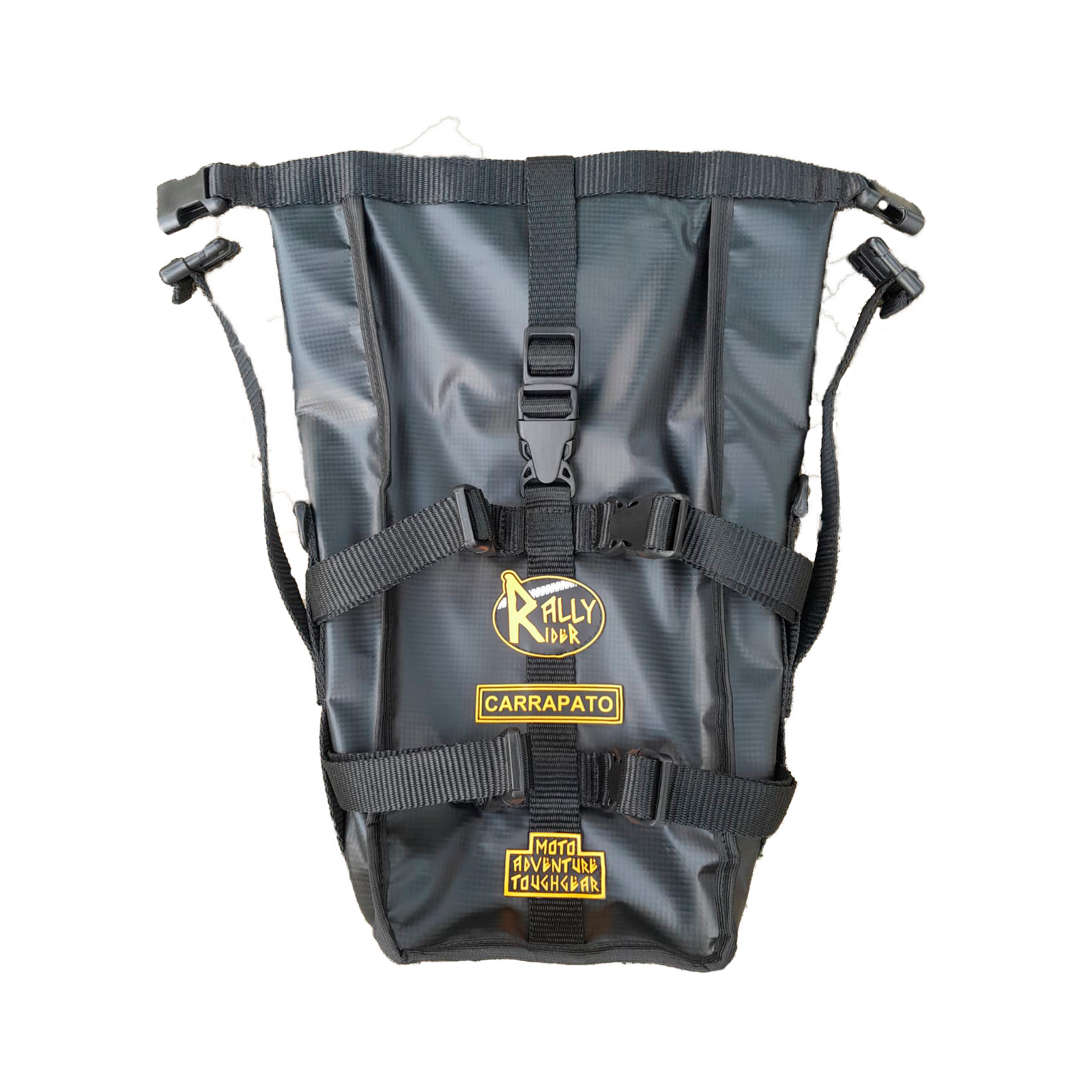 Ela é compatível com todos os alforjes da Rally Rider (como Ibitipoca, Sertão e Bocaina), podendo ser usada em protetores de motor, afastadores, carenagens ou bagageiros traseiros. Fixou? Tá firme. Precisa tirar? É no clique.