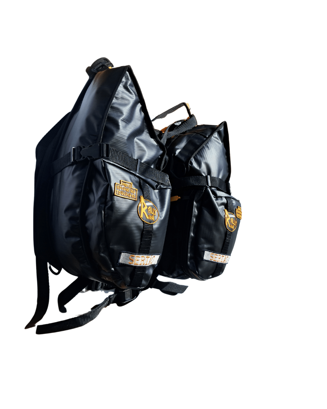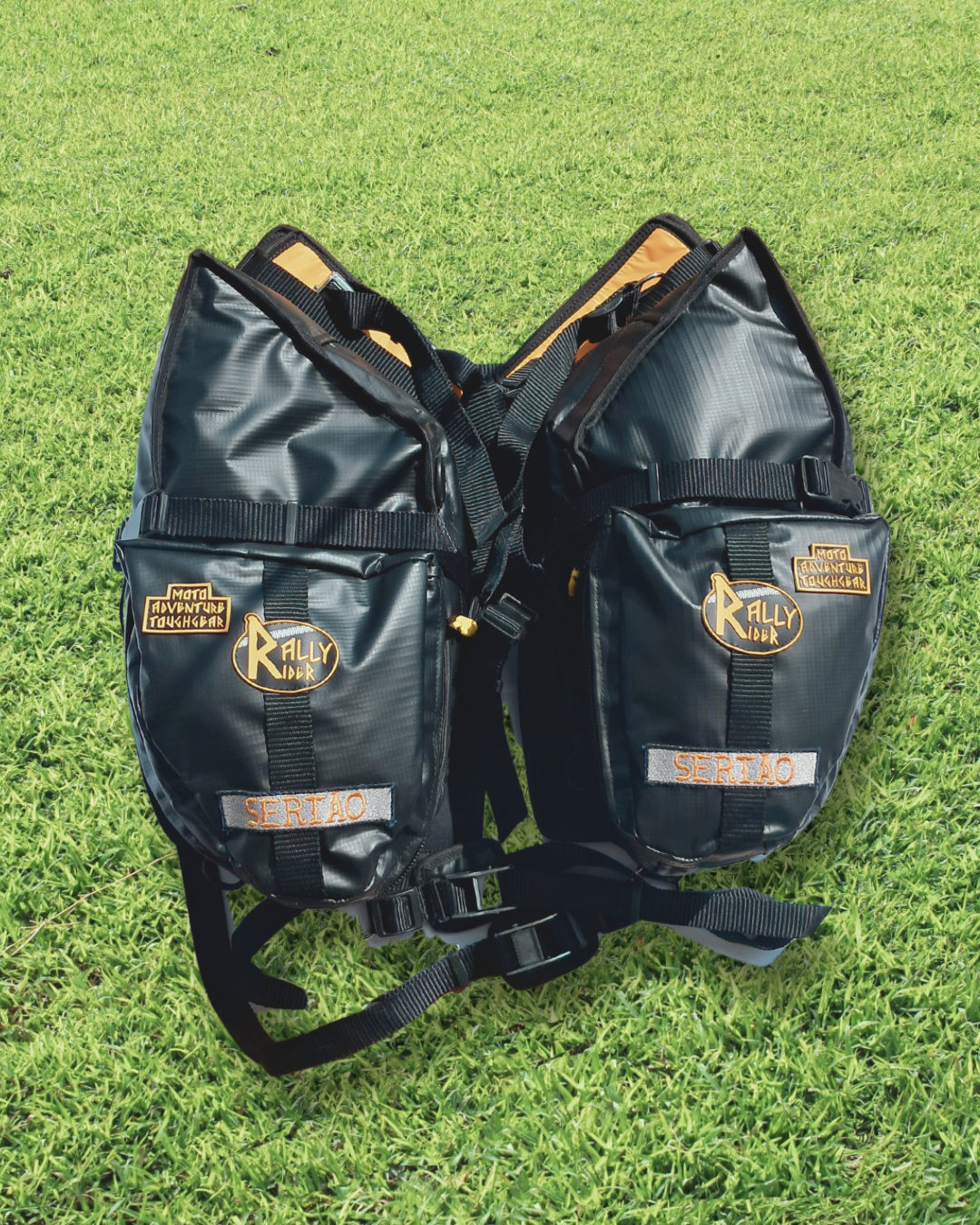O alforge Sertão foi projetado para pilotagem em rally. Ela carrega o suficiente para você não passar nenhum aperto por falta de peças e ferramentas, além de material suficiente para alguns pernoites.